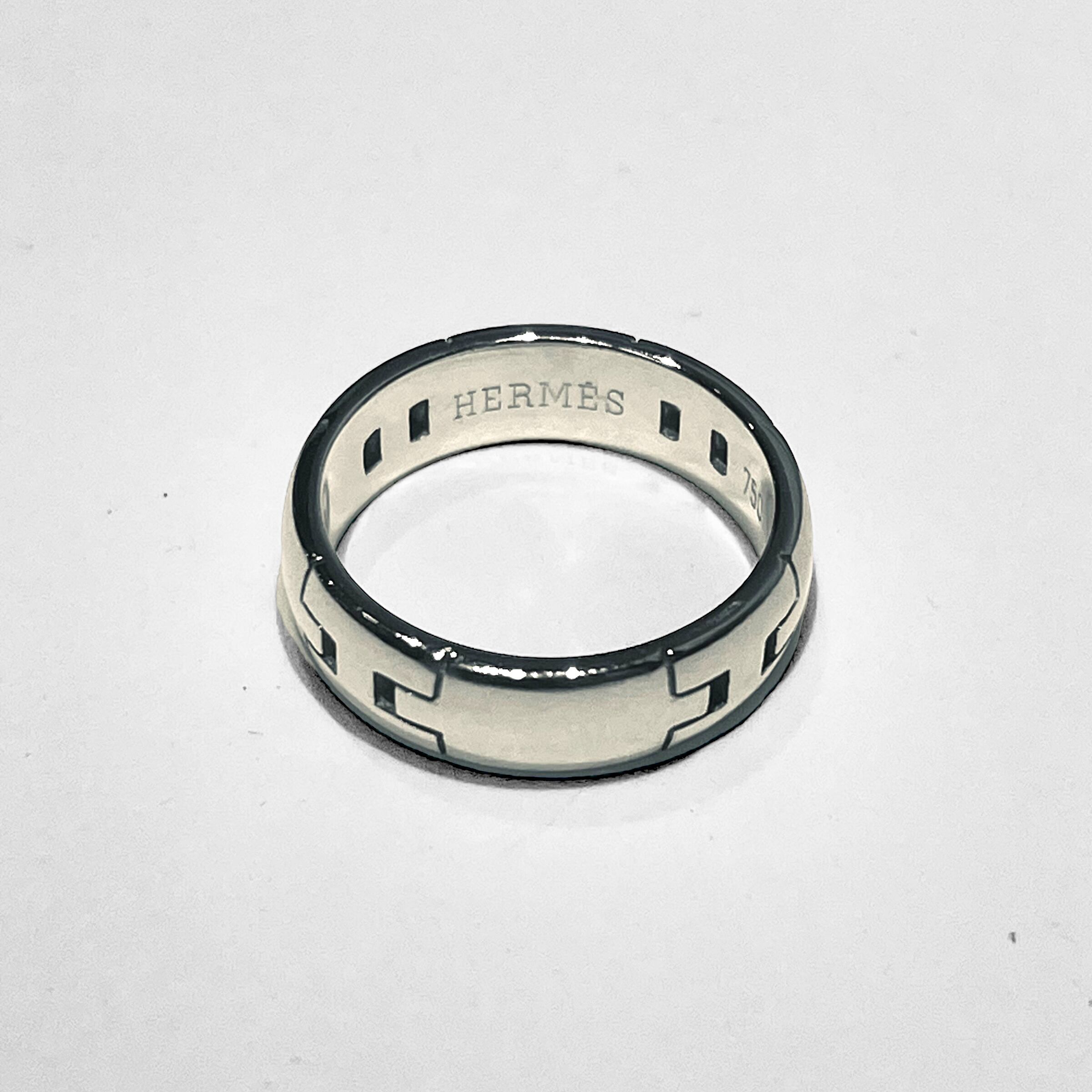 高級感と重厚感を感じさせるHERMESのヘラクレスリング。厚みのあるシルバーバンドが、指先を美しく飾るアクセサリーです。